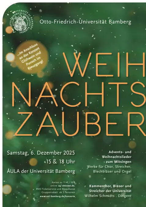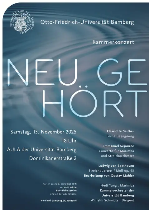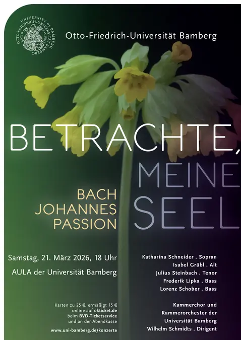 Karten zu 20 € / 10 € auf okticket.de, beim BVD-Ticketservice, am Lehrstuhl für Musikpädagogik und Musikdidaktik und an der Abendkasse