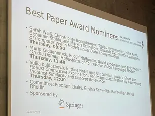 15.-18.09.2025 Das KogSys-Team bei der Tagung KI 2025 in Potsdam: 2nd Workshop AI in Production organized by Judith Knoblach and Erik Voigt (16.9.2025), Presentations by our students Luisa Schneider and Yuliia Kaidashova (runner-up for Best Paper Award) and doctoral researcher Benedikt Schlereth-Groh as well as joint work with Zeynep Saribatur (TU Vienna), furthermore, Ute Schmid has been involved as mentor at the doctoral consortium, organized by our former doctoral reseacher Gesina Schwalbe (now University Lübeck), and at the Women in AI Breakfast, joint with the doctoral consortium and AI Grid