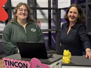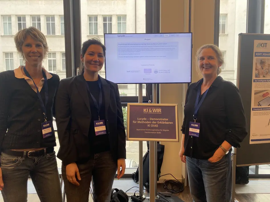 30.09.2025 Exponat Lucyde zu Erklärbarer KI auf der Konferenz der Plattform Lernende Systeme “KI & Wir”, mit Eda Ismail-Tsaous (Autorin des Demonstrators im Rahmen des BMFTR Projekts Ethyde) am bidt, zusammen mit Dr. Maria Staudte (bidt)