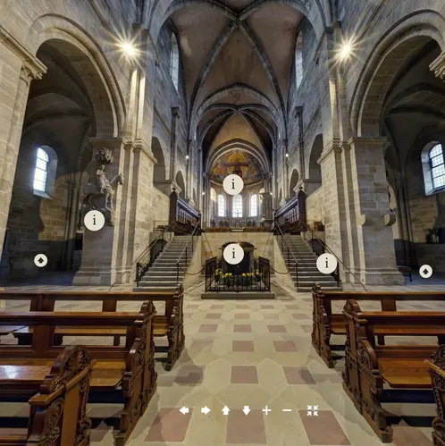 Hier finden Sie 360°-Aufnahmen und komplette Rundgänge des Bamberger Doms. Qualitativ hochwertig und annotiert vermitteln diese Ihnen einerseits einen authentischen Ersteindruck des Doms, sowie mit den annotierten Informationen einen wissensbasierten Zugang zu Historie des Sakralbautes.