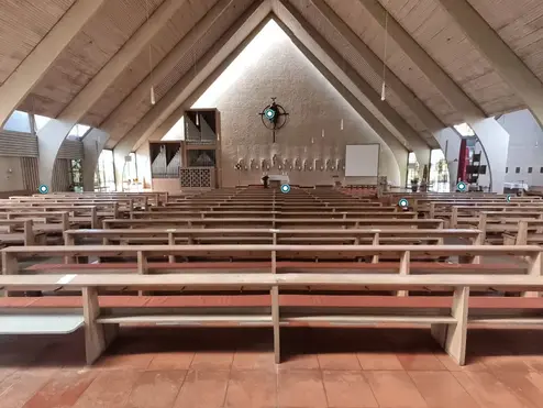 Mithilfe interaktiver digitaler Rallyes, sog. „Bounds", und einer VR-Brille werden die 3D-Kirchenmodelle zu VR-Kirchen(raum)erkundungen, welche Sie im TheoWerk selbst durchlaufen können.