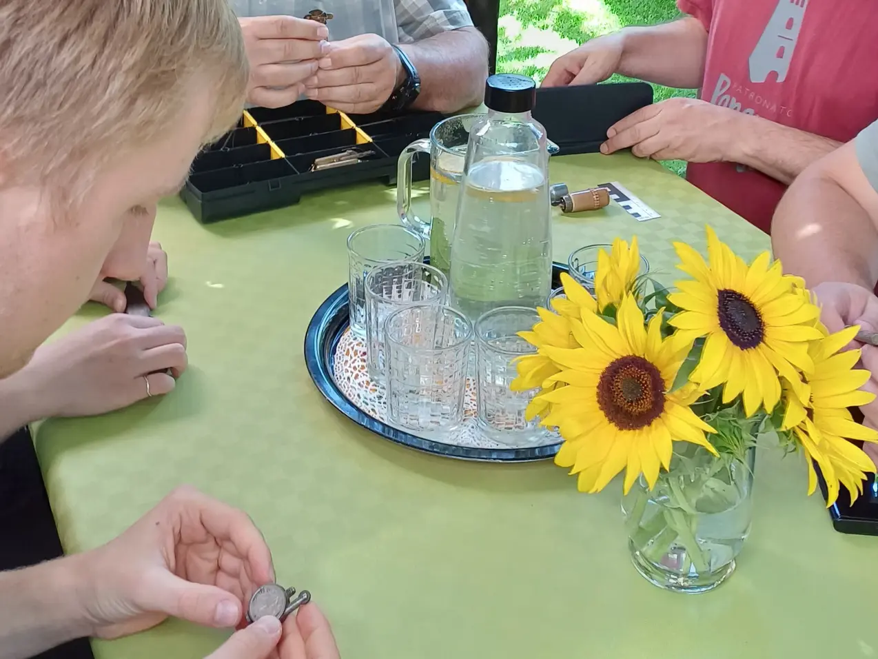 Daran anschließend wurde die kleine Ausstellung „Archäologieraum Assling“ im Gemeindeamt besucht, die Funde aus der Region zeigt, darunter Keramik des Hoch- und Frühmittelalters sowie ein gut erhaltenes römisches Skelettgrab[19]. Auch an diesen Fundstellen war Stadler maßgeblich beteiligt[20]. Ein besonderes Highlight der Ausstellung ist ein Juwelenkragen aus dem 11. bis 12. Jahrhundert von der Grabung St. Justina[21]. Die Präsentation bot Gelegenheit, die lokale Vermittlung archäologischer Forschung und den Aufbau regionaler Sammlungen zu reflektieren, da hier sehr kleine Räumlichkeiten in einem öffentlichen Gebäude genutzt wurden, die zeigen, wie kreativ bei der Sichtbarmachung der regionalen Archäologie vorgegangen werden kann.