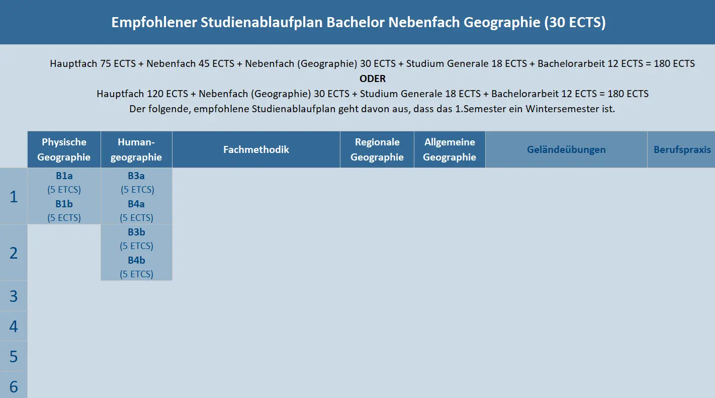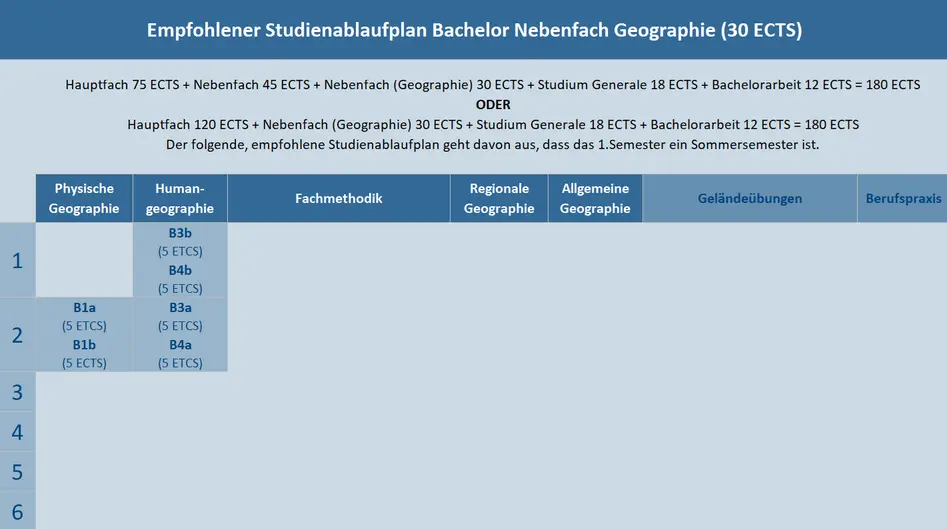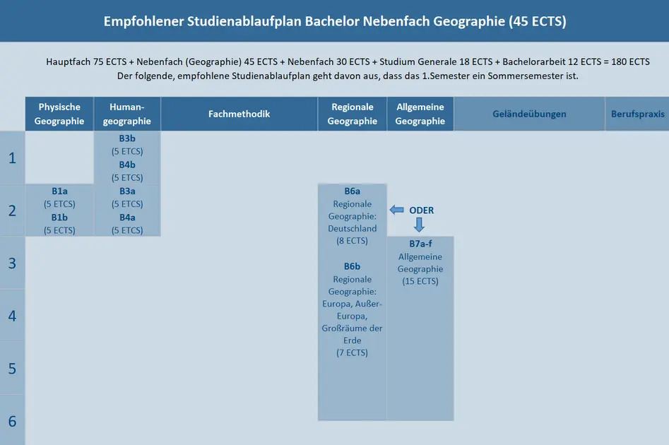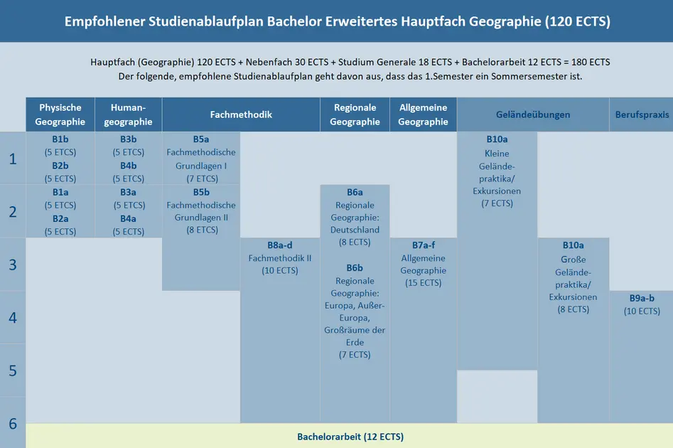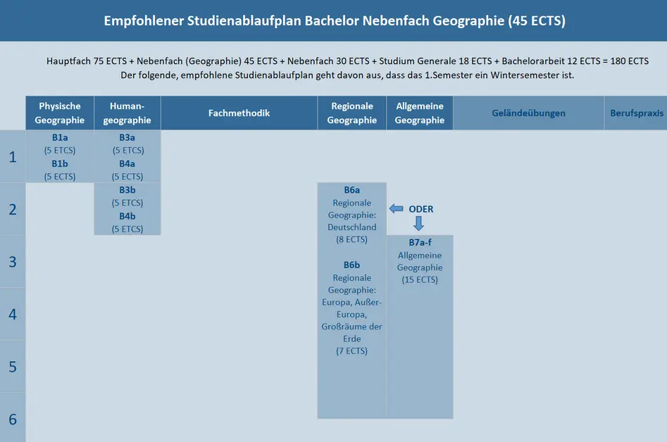- B5a: Fachmethodische Grundlagen I (Seminar: Einführung in das wissenschaftliche Arbeiten; Seminar: Kartographie und Statistik)