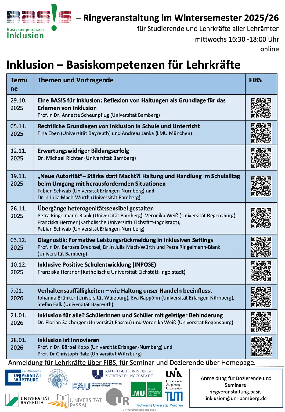 Ringveranstaltung BAS!S LMU München: "Inklusion ist machbar - Haltung, Wissen, Erfahrung" WS 24/25
