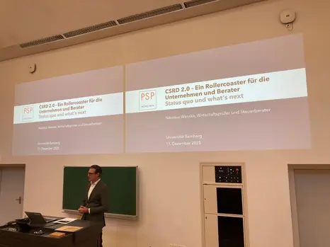 💡 Wir haben uns sehr gefreut, dass Nikolaus Wanske von Peters, Schönberger & Partner an der Otto-Friedrich-Universität Bamberg zu Gast war und unseren Studierenden spannende Einblicke zum hochaktuellen Thema "CSRD 2.0 - Ein Rollercoaster für die Unternehmen und Berater" geben konnte.