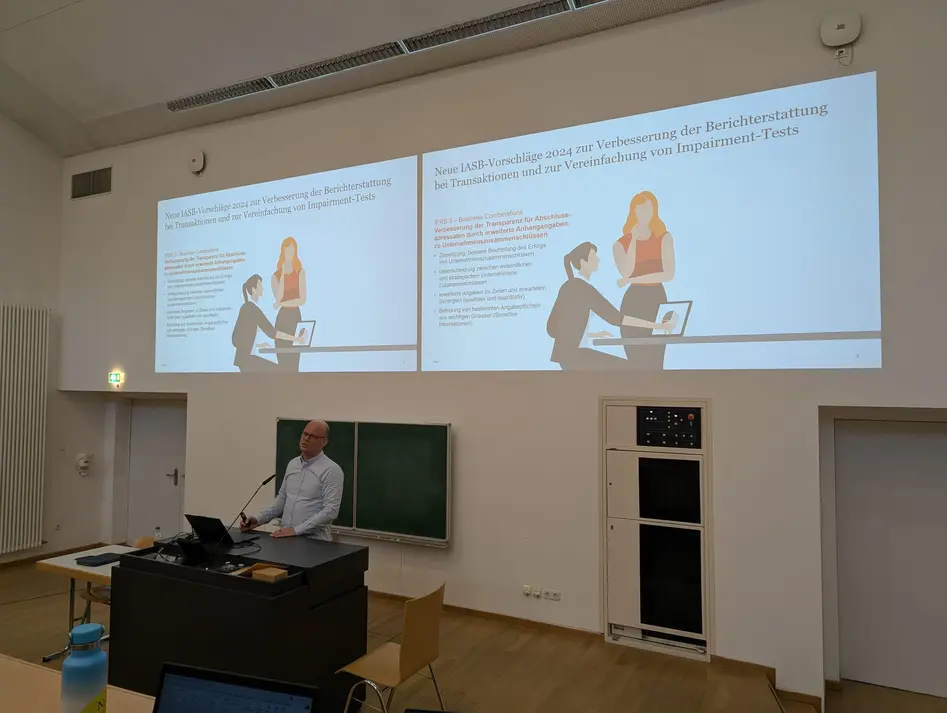 📈 Im Rahmen unserer Masterveranstaltung "Konzernrechnungslegung nach HGB und IFRS" hielt er einen Gastvortrag zum Thema "Neue Entwicklungen bei Impairment-Tests und bei Unternehmenstransaktionen".