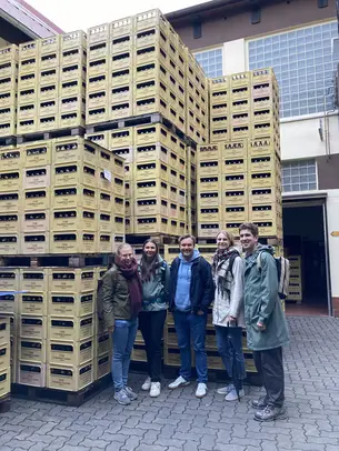 🗺️ Anschließend ging es auf einen themenspezifischen Stadtrundgang durch unsere Bierkulturstadt Bamberg mit abschließender Besichtigung der Brauerei "Schlenkerla", wo unsere wissenschaftlichen Mitarbeitenden auch selbst ein Seidla direkt vom Biertank zapfen durften.