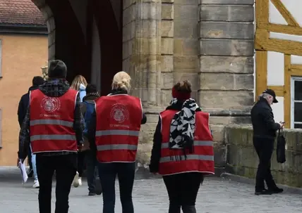 16 internationale Studierende und Studierende des IADK lernen gemeinsam zerstörungsfreie Dokumentationsmethoden in und um den Bamberger Dom.