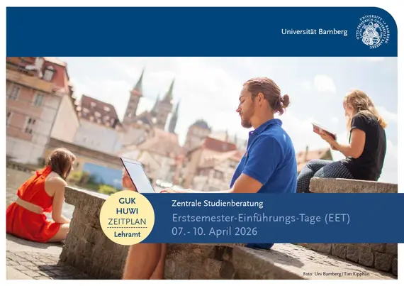 während der Erstsemestereinführungstage (EET) wird eine Vielzahl an Veranstaltungen angeboten, um den Einstieg ins Studium an der Universität Bamberg möglichst einfach zu gestalten. Die wichtigsten Veranstaltungen sind die Facheinführung sowie das Fachtutorium, die für jeden Studiengang angeboten werden. Diese Veranstaltungen sollten besucht werden und helfen, organisiert und stressfrei in die ersten Wochen des Studiums zu starten. Es wird empfohlen an möglichst vielen Veranstaltungen vor Ort teilzunehmen, um bestmöglich ins Studium zu starten.