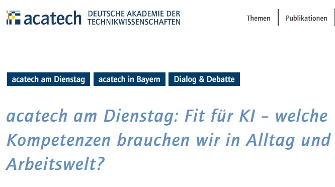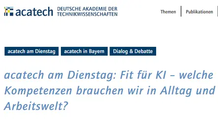 acatach on Tuesday: Fit for AI – what skills do we need in everyday life and at work?