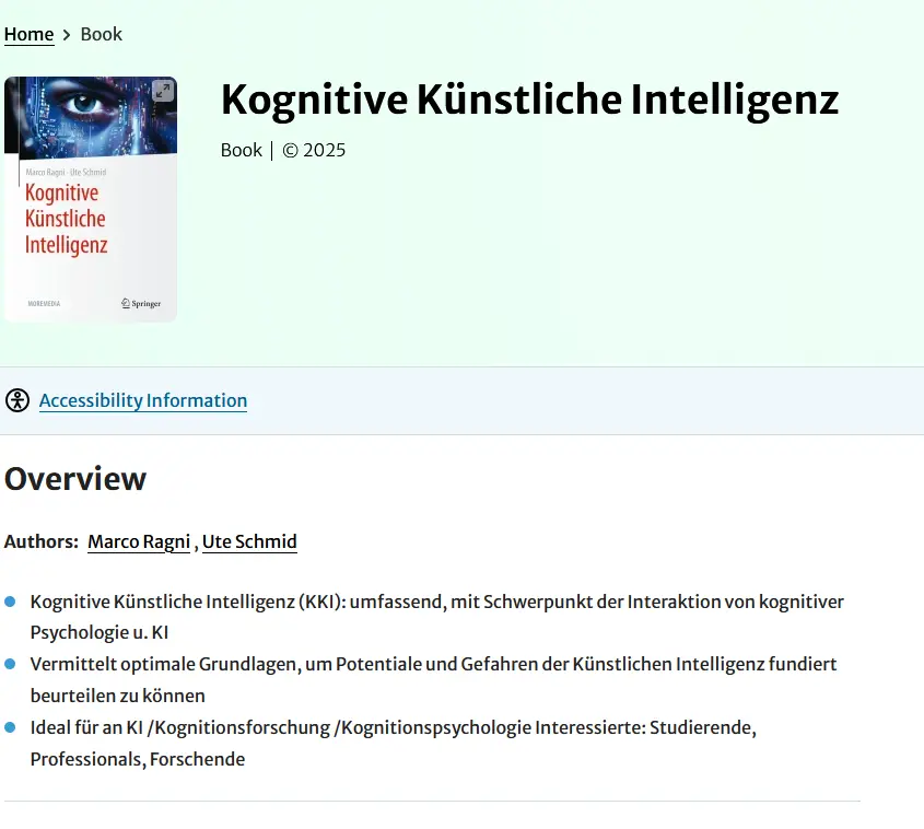 29.10.2025 Das Springer Lehrbuch Kognitive Künstliche Intelligenz von Marco Ragni und Ute Schmid ist erschienen
