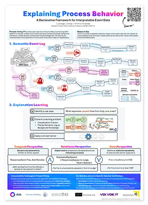 The aim of the project is to develop semantic methods in process mining in order to analyse business processes holistically, transparently and comprehensibly. The focus here is on the semantic enrichment of event data, through which process contexts and relationships can be explicitly modelled. A so-called semantic event log was developed for this purpose, which records domain-specific knowledge in a structured manner and enriches it using ontology-based and declarative methods. This forms the basis for new methods of explainable artificial intelligence (XAI) in process mining. On this basis, the following technical results were achieved, among others: