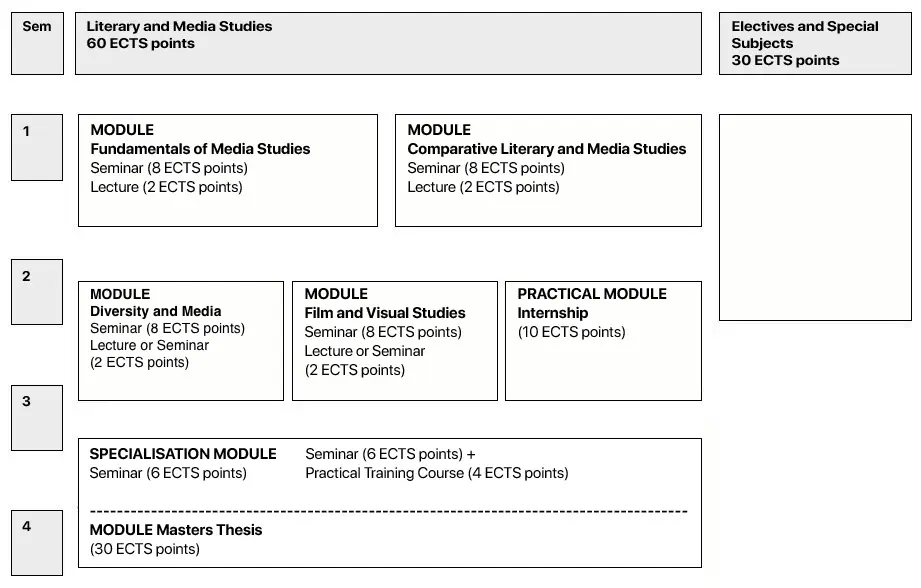 Students who choose the master’s programme in Literary and Media Studies complete the following modules: