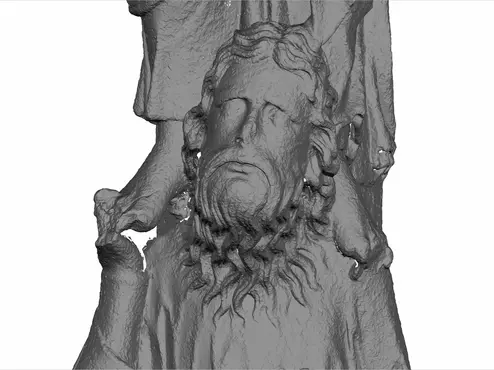The image shows the interim result of a 3D scan of one of the figures from the Bamberg Fürstenportal; more information about the associated project can be found here.