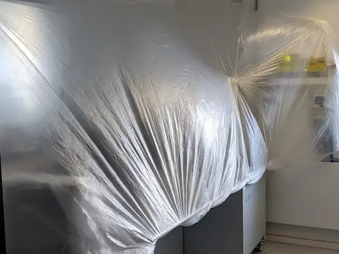 Just in time for Halloween, our scanning electron microscope dressed up in ghostly garb. Fortunately, the haunting was brief.