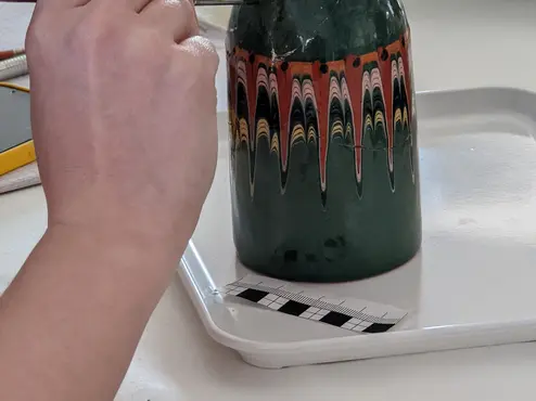 Impression from the block seminar "Introduction to Object Conservation" as part of the course offering for the subject "Cultural Property Conservation" (Kulturgutsicherung) in WS2021/22.