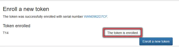 If the passkey has been successfully stored, you will receive the message The token has been rolled out in the next window.