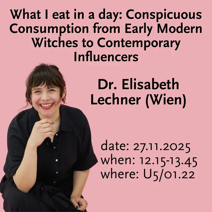 Join us for Dr. Elisabeth Lechner's lecture "What I eat in a day: Conspicuous Consumption from Early Modern Witches to Contemporary Influencers".