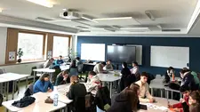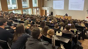 In der folgenden Arbeitsphase lernten die Schüler:innen nicht nur das universitäre Format eines Seminars kennen, sondern vertieften vor allem die gehörten Inhalte in kleineren Gruppen. Unter der Leitung von Studierenden und wissenschaftlichen Mitarbeitenden tauschten sie erste Eindrücke aus, formulierten eigene Fragestellungen und entwickelten schließlich weiterführende Thesen. Die Ergebnisse wurden im Anschluss in einer gemeinsamen Plenumsdiskussion mit den Referierenden aufgegriffen und diskutiert.