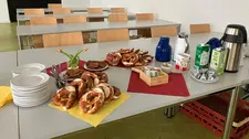 In der Pause bestand im Rahmen eines Meet & Greets mit Theologiestudierenden die Möglichkeit, Fragen rund um Studium und Studierendenleben in Bamberg zu stellen. Zudem informierten Vertreter:innen der Zentralen Studienberatung über das breite Studienangebot der Universität Bamberg.