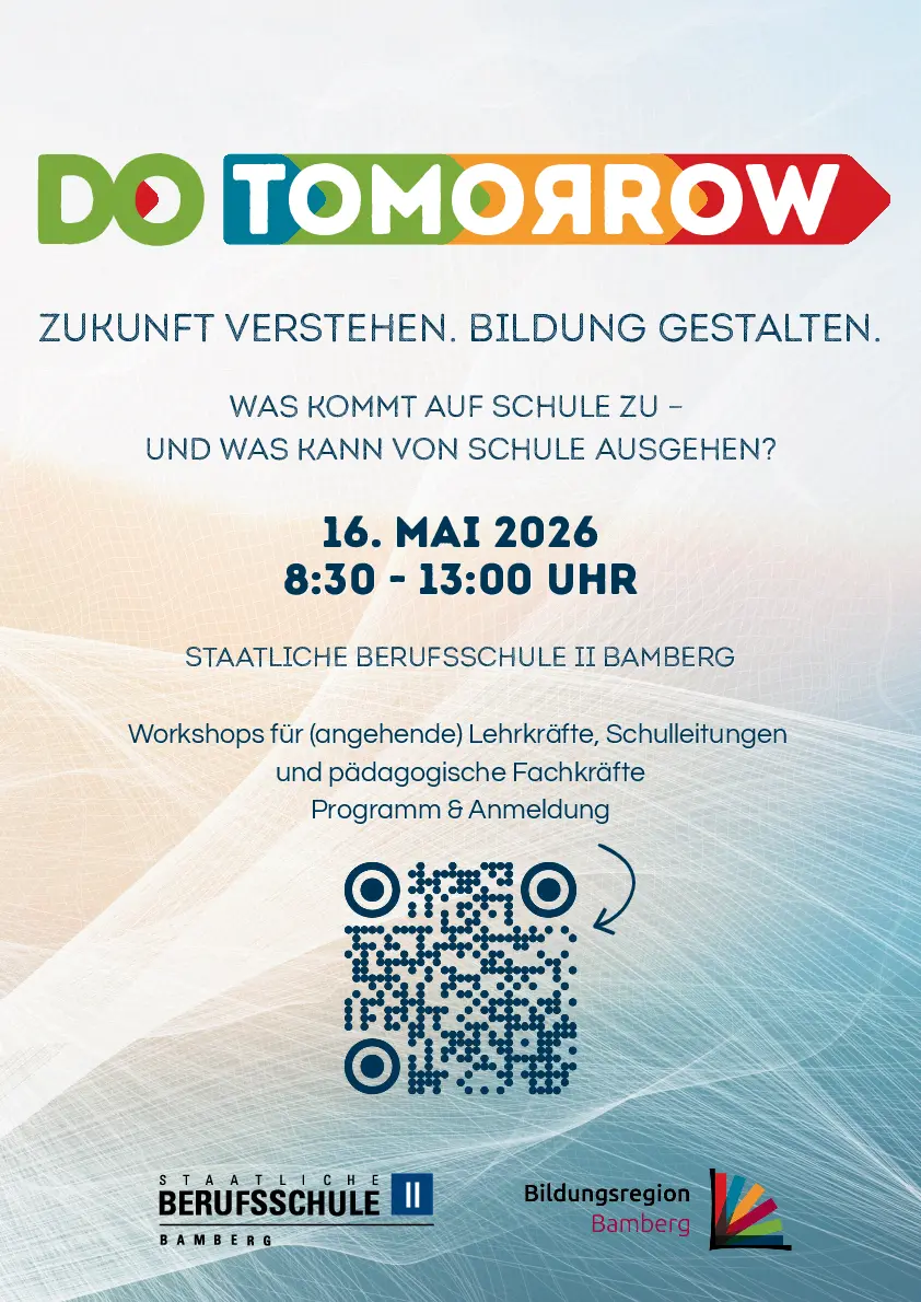 - Symposium „Do Tomorrow“ am 16.5.2026 in der Staatlichen Berufsschule II, Bamberg