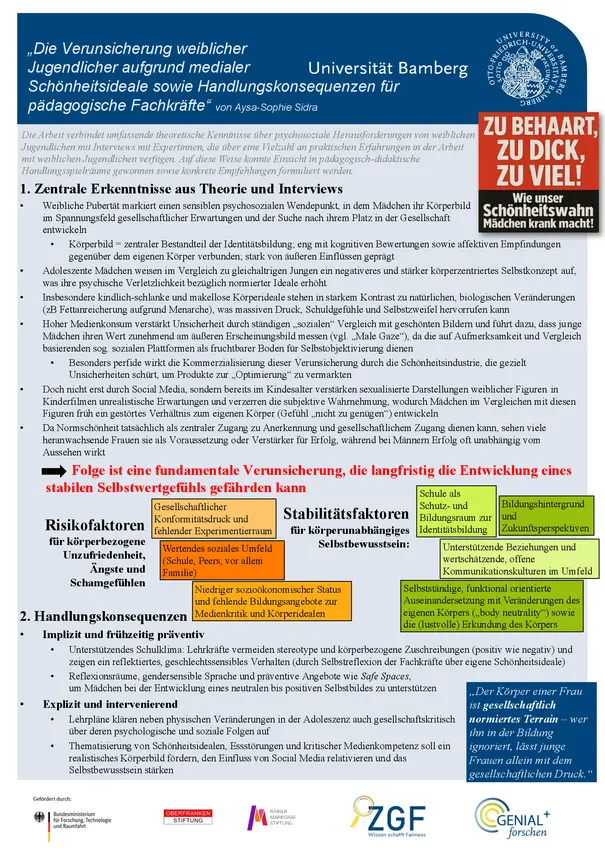 Die Verunsicherung weiblicher Jugendlicher aufgrund medialer Schönheitsideale sowie Handlungskonsequenzen für pädagogische Fachkräfte