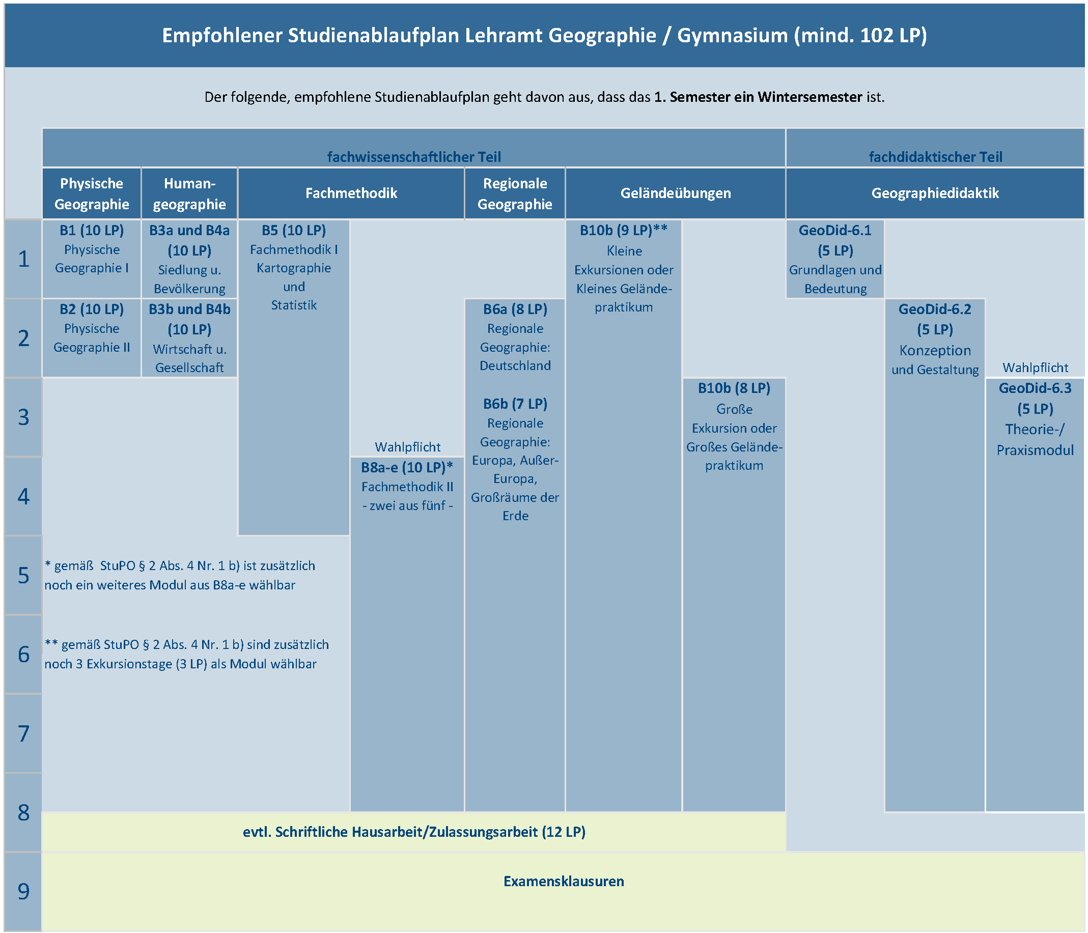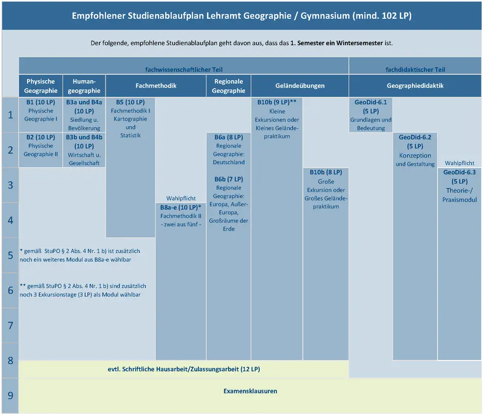 - In der Studien- und Prüfungsordnung für Lehrämter (StuPO) finden Sie die für Sie relevanten Informationen unter § 14 Geographie.