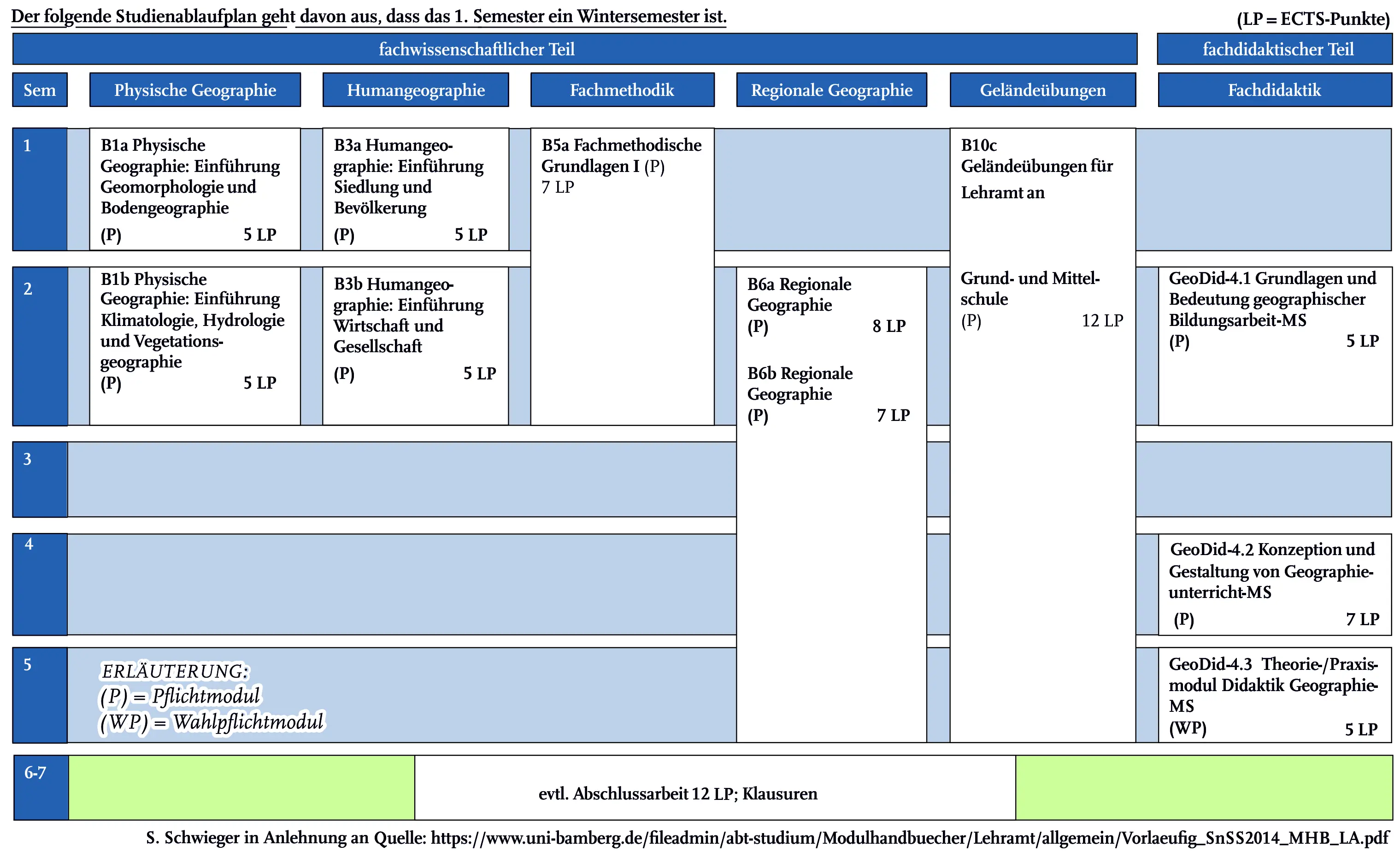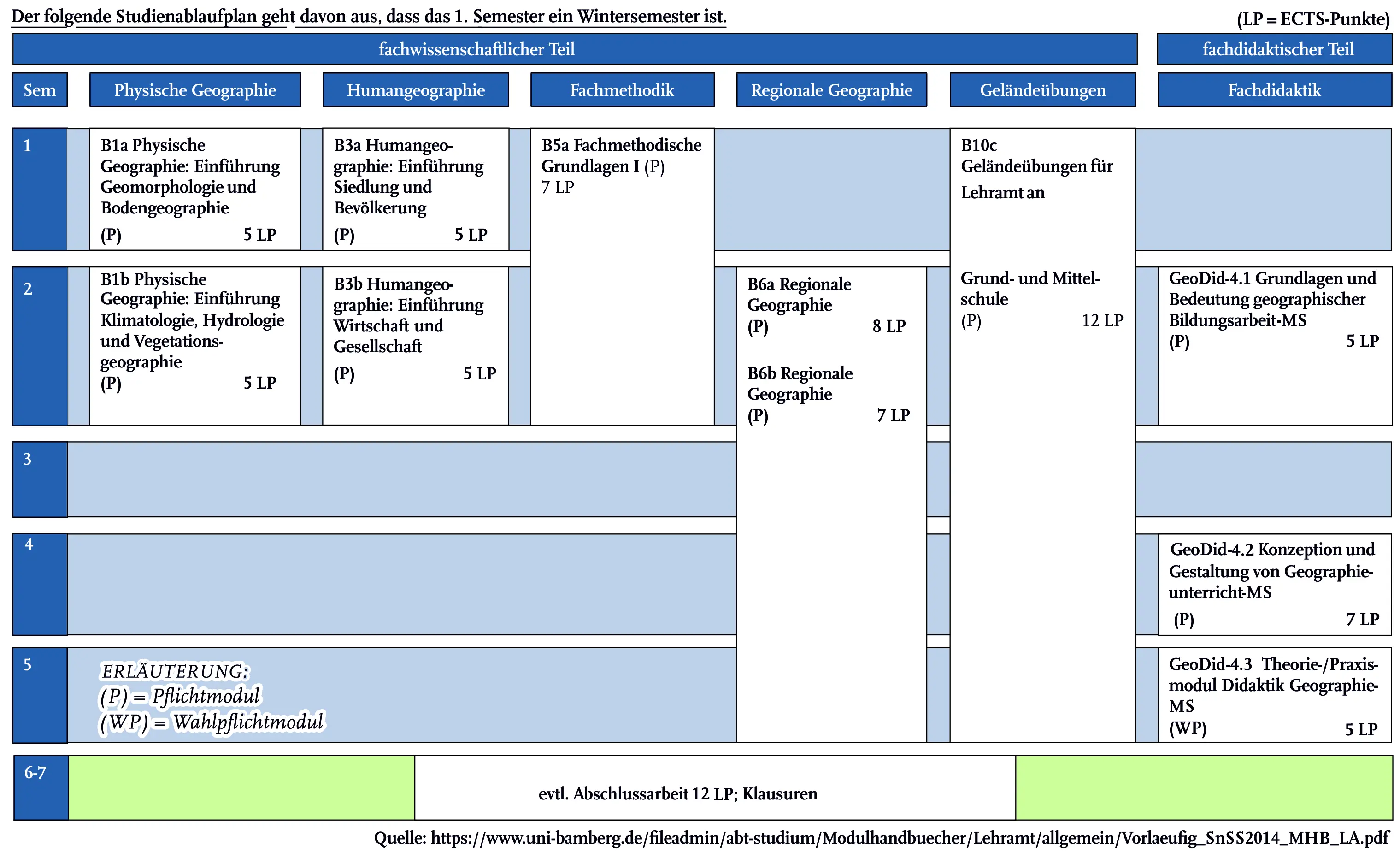 - In der Studien- und Prüfungsordnung für Lehrämter (StuPO) finden Sie die für Sie relevanten Informationen unter § 14 Geographie.
