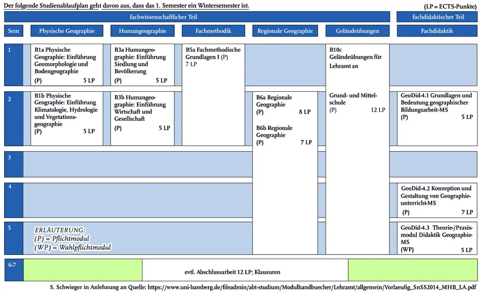 - Seminar (2 SWS; 4 LP/ECTS-Punkte): Regionale Geographie - Deutschland (physisch-geographischer Teil)