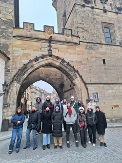 Wintersemester 2025/26: Karlsbad und Prag. Dreitägige Exkursion mit 15 Studierenden vom 20.-23.01.2026 im Rahmen des Seminars „Heterotopien der Heilung: Kurkultur in Text, Bild und Architektur“ mit Prof. Dr. Jörn Glasenapp (Literatur und Medien). Mit Besuchen in 12 Heilquellen und einer Stadtführung vorbei an den Kolonnaden, den beiden St. Peter und Paul Kirchen, der frühere Manufaktur des Becherovkas, den Goethe- und Schiller-Denkmälern in Karlsbad und einer kultur-historischen Führung durch Prag sowie einem Besuch im Kafka-Museum.