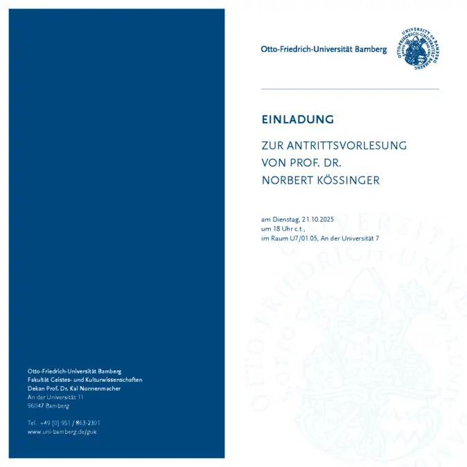 Die Veranstaltung findet am Dienstag, den 21. Oktober 2025, um 18 Uhr c.t., im Hörsaal U7/01.05 (An der Universität 7) statt.