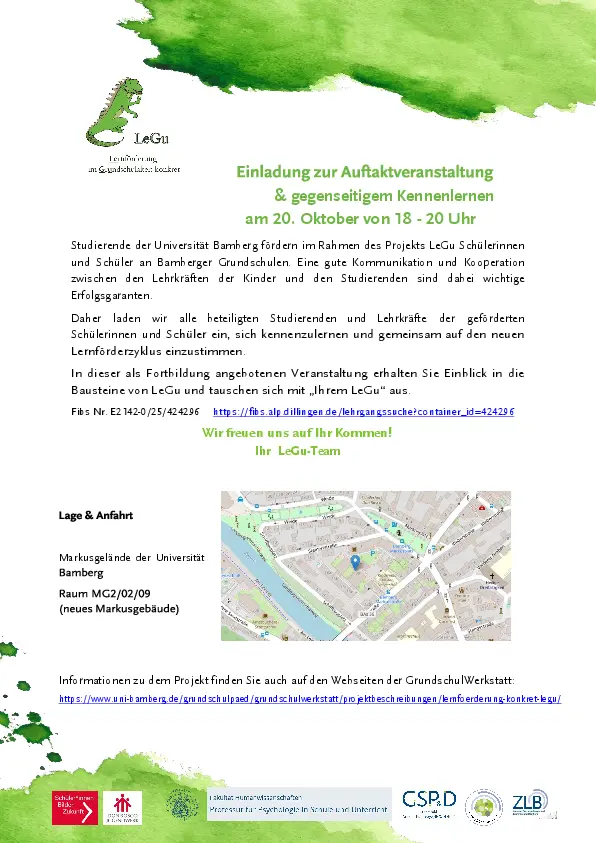 Lehrkräfte, die am Projekt LeGu aktiv teilnehmen, können die Veranstaltungen im Rahmen von LeGu als Weiterbildung anrechnen.