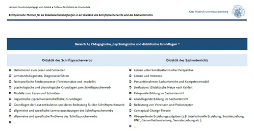 Im Rahmen Ihrer Anmeldung zum Staatsexamen über das Prüfungsamt können Sie wählen, ob Sie Ihre mündliche Prüfung in der Didaktik des Schriftspracherwerbs oder des Sachunterrichts absolvieren möchten. Das Format der beiden Prüfungen unterscheidet sich nicht – die nachfolgenden Informationen gelten daher für beide Bereiche gleichermaßen.