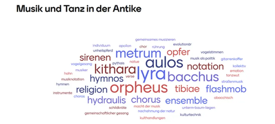Leon Oberst führte uns zu den Anfängen von Musik und Tanz im 5. Buch von Lukrezens Gedicht De rerum natura mit einer Einbettung in die Kulturentstehung, die Voraussetzungen und Impulse durch Nachahmung der Natur; die Diskussion sollte zeigen, dass Lukrez mit seinen Vorstellungen nicht weit von moderner Evolutionstheorie entfernt war. Mit dem Verweis darauf, dass es sich bei der Erfindung des rituellen Tanzes in diesem Gedicht um einen antiken – vielleicht den ersten bezeugten – Flashmob gehandelt haben könnte, bekräftigte Leon Oberst seine Position, dieser sei ein überzeitliches Phänomen – der Grundstein für eine neue Forschungsrichtung war gelegt: ‚flashmob studies‘. Josie Ostmann widmete sich der antiken Sängerfigur Orpheus anhand zentraler Texte von Apollonios von Rhodos, Vergil und Ovid und zeigte ihn als Kristallisationsfigur von Musik und Tanz und dem Wirken seines Leierspiels und Gesangs auf Tiere, Pflanzen und Menschen. Benjamin Sieber lenkte unseren Blick dann auf ekstatische Formen des Tanzes als Ausdrucksform von Gedanken- und Gefühlswelten, als kultische Performanz in dionysischer Manier, geradezu in einem Flow, sowie als List in der Aeneis.