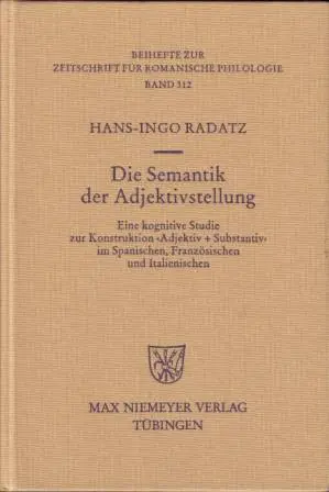 Radatz, Hans-Ingo: Die Semantik der Adjektivstellung. Eine kognitive Studie zur Konstruktion ‘Adjektiv + Substantiv’ im Spanischen, Französischen und Italienischen, Tübingen: Niemeyer (Beihefte zur Zeitschrift für romanische Philologie; 312; zugl. Dissertation Chemnitz 1998), 2001, ISBN: 3-484-52312-3.
