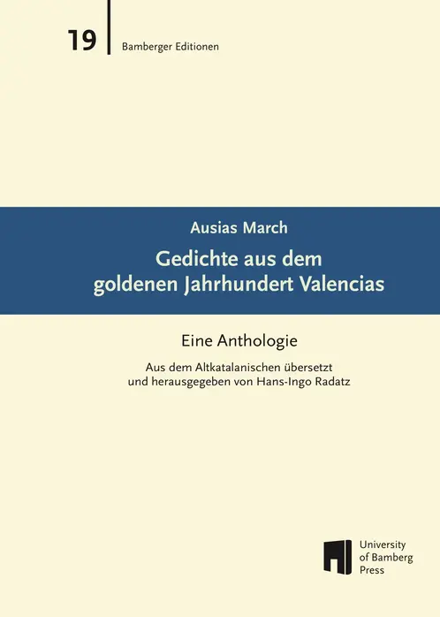 Radatz, Hans-Ingo (2023): Gedichte aus dem goldenen Jahrhundert Valencias: Eine Anthologie; 30 poetische Meditationen über die Angst vor Gottes Zorn, die Unmöglichkeit der reinen Liebe, die Erforschung der eigenen Gefühle und das Scheitern der Ansprüche an der Wirklichkeit. Bamberg University of Bamberg Press (Bamberger Editionen 19).