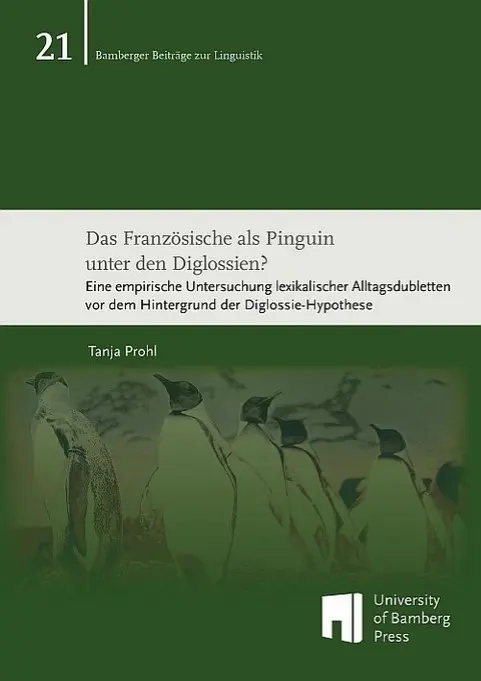 Prohl, Tanja (2019): Das Französische als Pinguin unter den Diglossien?, Eine empirische Untersuchung lexikalischer Alltagsdubletten vor dem Hintergrund der Diglossie-Hypothese, Bamberg: University of Bamberg Press (Bamberger Beiträge zur Linguistik; 21).