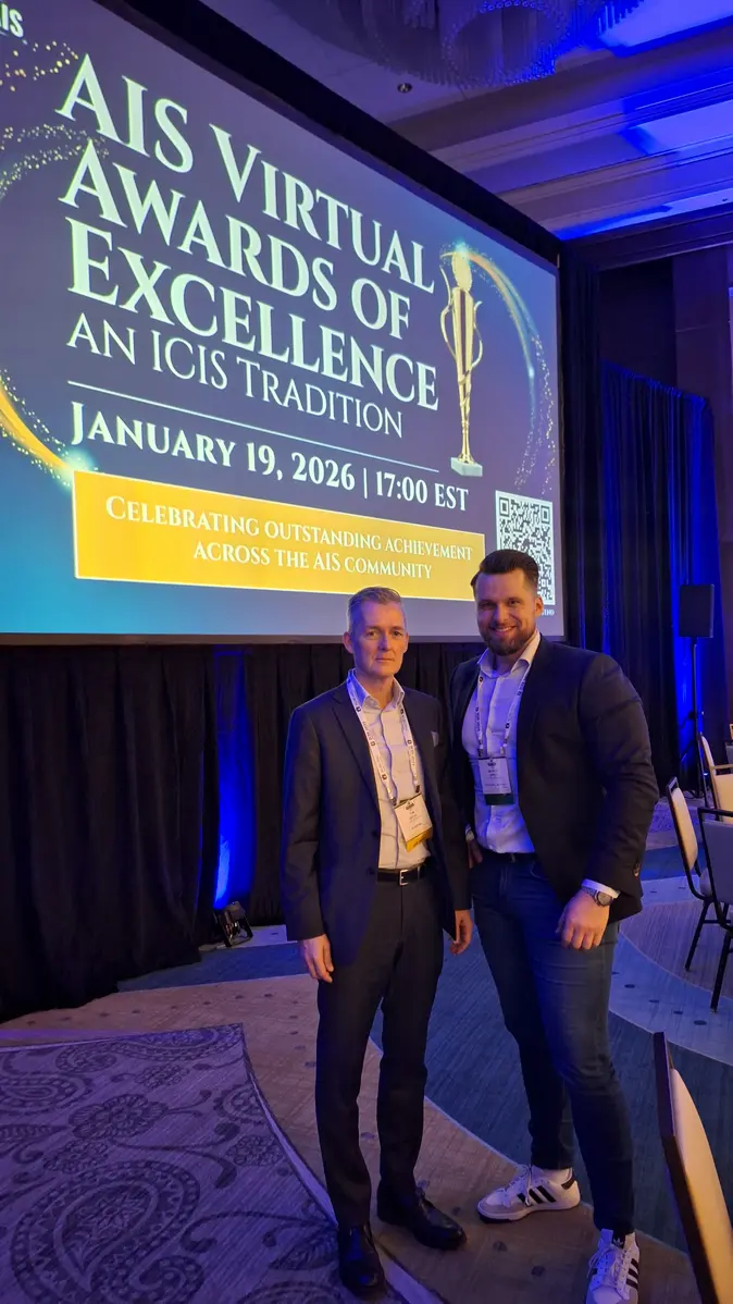 Darüber hinaus war Prof. Dr. Tim Weitzel auf vielfältige Weise in das Konferenz- und Workshop-Programm eingebunden. Er verlieh als Mitglied des Executive Board des AIS Chapter Germany (AISD) zusammen mit Prof. Dr. Helmut Krcmar und Prof. Dr. Tilo Böhmann den AISD First Award bei der jährlichen AISD Reception. Zudem engagierte er sich als Mentor beim ICIS Faculty Mid-Career Workshop sowie beim MISQE Academic Workshop zum Thema „The Future of Artificial Intelligence in the Enterprise“. Außerdem wirkte er als Panelist im DIGIT-Workshop 2025 „Rethinking Technology Adoption for Interconnected and Intelligent Technologies“ der Special Interest Group on Adoption and Diffusion of Information Technology (SIG ADIT). Im DIGIT-Workshop war Dr. Christoph Weinert als Workshop Chair tätig.