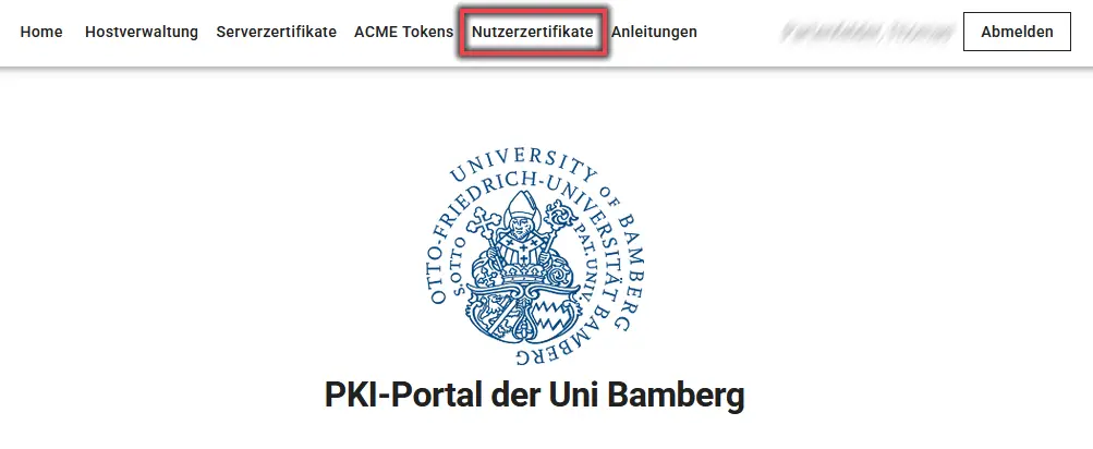 Nach erfolgreicher Anmeldung klicken Sie in der oberen Menüleiste auf den Reiter Nutzerzertifikate.