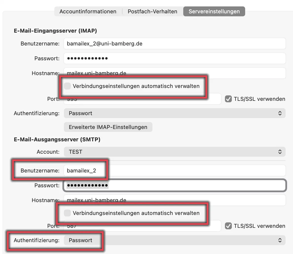 Server für ausgehende E-Mails: mailex.uni-bamberg.de