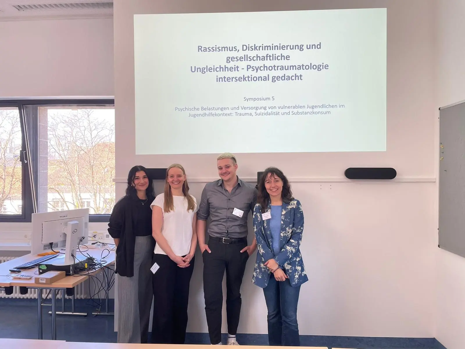 Das Team des Lehrstuhls für Klinische Kinder- und Jugendlichenpsychologie der Otto-Friedrich-Universität Bamberg hat mit mehreren aktiven Beiträgen die diesjährige DeGPT-Konferenz in Berlin mitgestaltet. Unter dem Kongresstitel „Rassismus, Diskriminierung und gesellschaftliche Ungleichheit – Psychotraumatologie intersektional gedacht“ wurden wichtige Themen zur Psychotraumatologie diskutiert. Die Konferenz beschäftigte sich unter anderem mit der Frage, wie strukturelle und interpersonelle Diskriminierung zur Entstehung und Aufrechterhaltung von Traumafolgestörungen beitragen. Darüber hinaus wurde erörtert, welche Rolle gesellschaftliche Machtverhältnisse in der Wahrnehmung und Behandlung von Traumata spielen und wie therapeutische Prozesse angemessen auf diese Dynamiken eingehen können. Das Team konnte sich aktiv an den Diskussionen beteiligen und neue Perspektiven entwickeln, um die komplexen Zusammenhänge zwischen Diskriminierung, Traumata, Traumafolgestörungen und gesellschaftlicher Ungleichheit zu beleuchten. Der Austausch zwischen Wissenschaft und Praxis stand dabei im Fokus, um die psychotraumatologische Versorgung, Forschung und gesellschaftspolitische Ansätze miteinander zu verknüpfen.