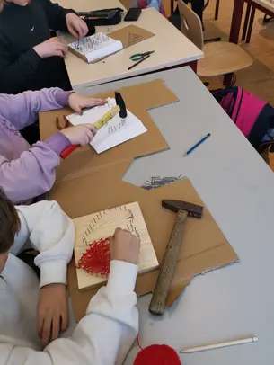 String Art, auch Fadenbilder genannt, vereint Kunst und Handwerk. Dabei werden Nägel auf ein Holzbrett geschlagen und anschließend Fäden zwischen den Nägeln gespannt. Linda Wohlleber führte ihr String-Art-Projekt im Rahmen der Nachmittagsbetreuung am Schulzentrum Haßfurt durch. Insgesamt nahmen 48 Schülerinnen und Schülern der Jahrgänge 5-10 an den vier Projektnachmittagen teil.