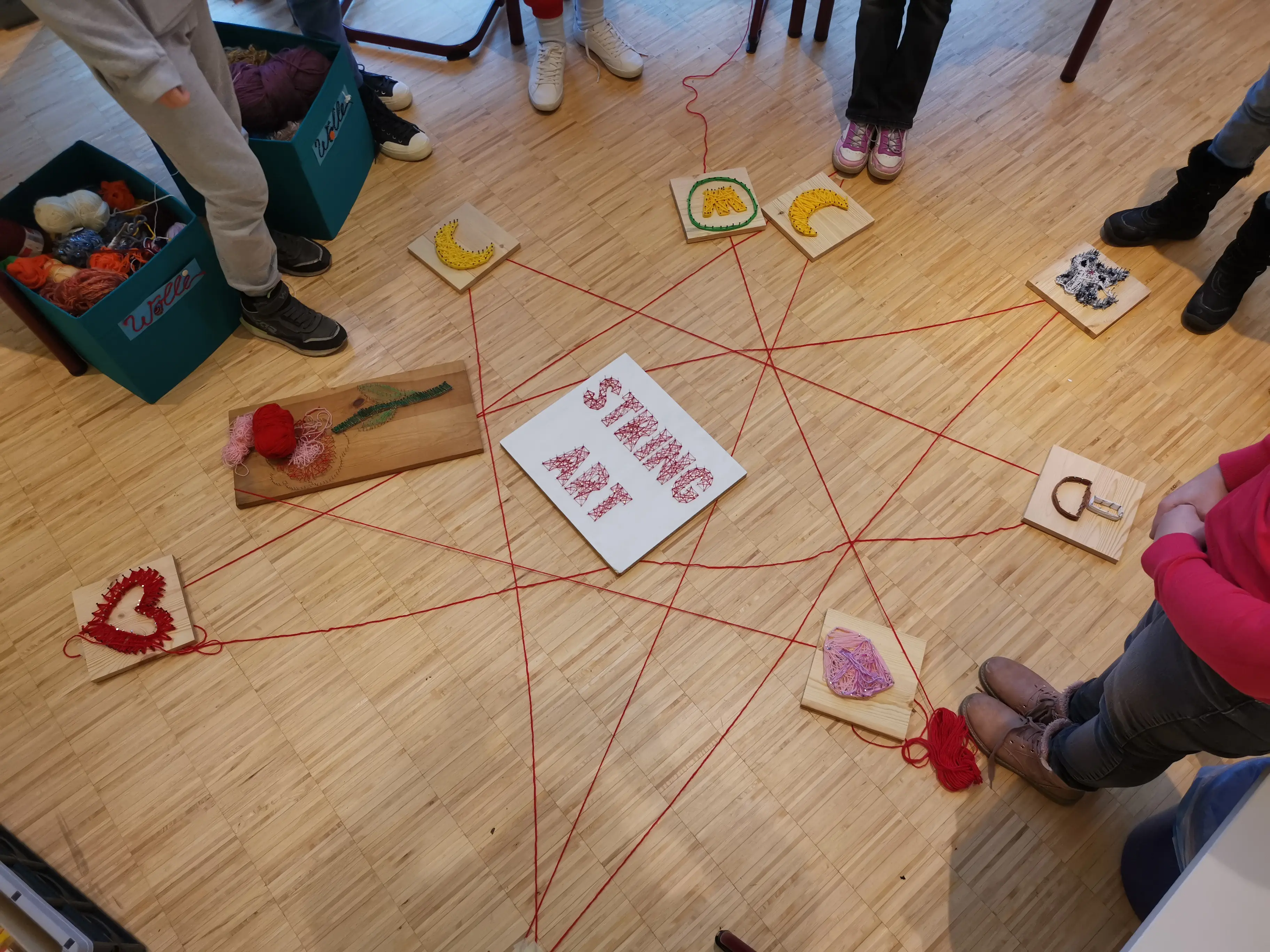 String Art, auch Fadenbilder genannt, vereint Kunst und Handwerk. Dabei werden Nägel auf ein Holzbrett geschlagen und anschließend Fäden zwischen den Nägeln gespannt. Linda Wohlleber führte ihr String-Art-Projekt im Rahmen der Nachmittagsbetreuung am Schulzentrum Haßfurt durch. Insgesamt nahmen 48 Schülerinnen und Schülern der Jahrgänge 5-10 an den vier Projektnachmittagen teil.