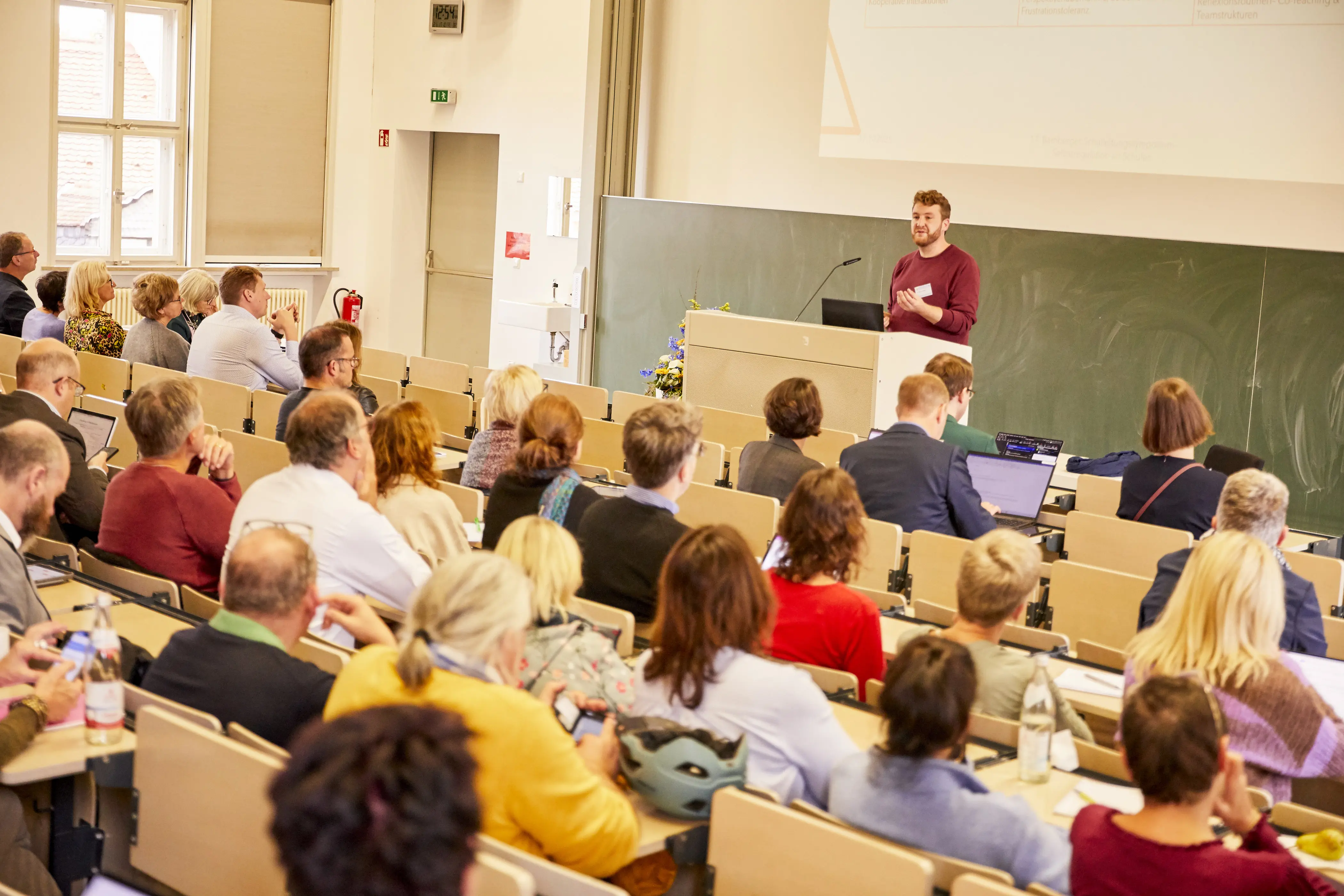 Am 16. und 17. Oktober 2025 fand das 17. Bamberger Schulleitungssymposium statt. Eingeladen hatten das ZLB und der Lehrstuhl für Allgemeine Pädagogik zusammen mit der Akademie für Lehrerfortbildung und Personalführung (ALP) Dillingen. Zwei Tage lang kamen Schulleitungen, Lehrkräfte, Forschende und Studierende zusammen, um sich dem hochaktuellen Thema „Demokratiebezogene Bildung“ aus verschiedenen Perspektiven zu widmen.