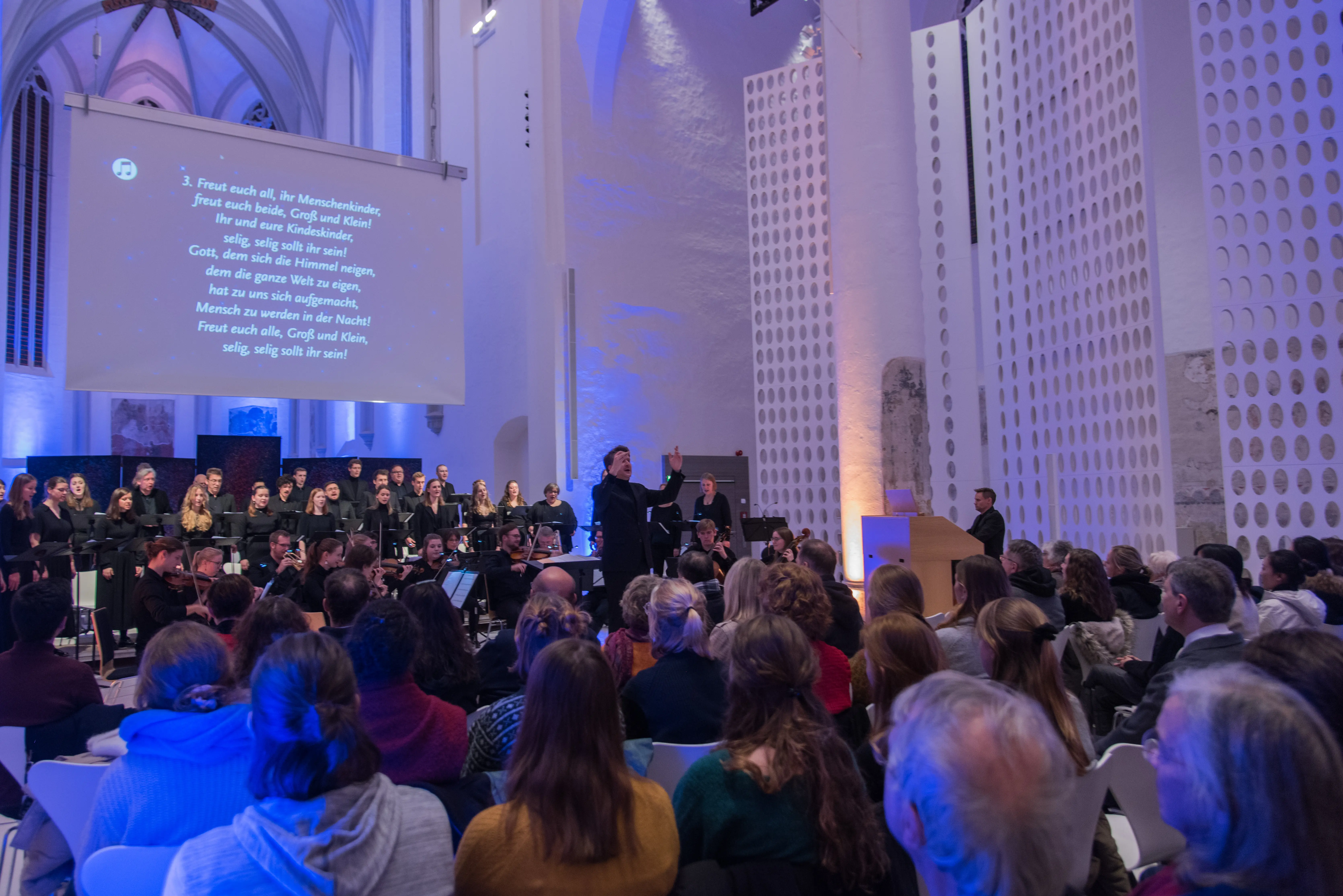 Singen gehört zu Advent und Weihnachten wie Plätzchen, Krippe und Adventskranz. In diesem Konzert ist das ganze Publikum dazu eingeladen, bei den bekannten Advents- und Weihnachtsliedern zusammen mit dem Chor und den Instrumenten mitzusingen! Mal fröhlich und schwungvoll, strahlend und erhaben, dann wieder still und besinnlich, mit beliebten Klassikern, aber auch unbekannteren Melodien - für alle ist etwas dabei. Dazu erklingen stimmungsvolle Chorsätze sowie Musik für Streicher und Blechbläser.