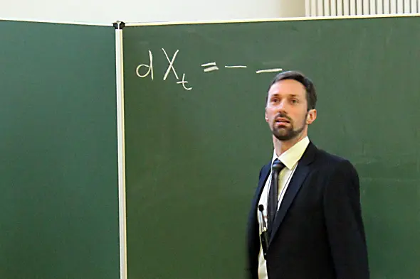 Andere Verteilungen hingegen folgen nicht der Normalverteilungsparabel. Hier verwies Milaković auf Firmenumsätze, Städtegrößen und Gehälter. Ökonomisches Einkommen umspanne beispielsweise mindestens vier Größenordnungen. Passend zum abendlichen Champions League-Spiel hatte Milaković ein Beispiel aus dem Fußball parat: „Christiano Ronaldo schießt in einer Saison nicht um ein oder zwei Größenordnungen mehr Tore. Aber sein Gehalt unterscheidet sich um ein oder zwei Größenordnungen von dem anderer Fußballprofis.“