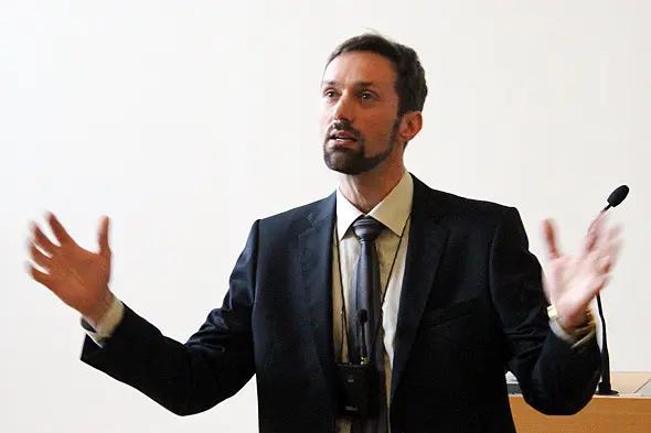 „Mishael Milaković vereint in sich sämtliche Aspekte eines guten Wissenschaftlers“, würdigte Prof. Dr. Olaf Struck, Dekan der Fakultät für Sozial- und Wirtschaftswissenschaften, Milaković zu Beginn seiner Antrittsvorlesung am 23. April. Milaković ist seit 2010 an der Otto-Friedrich-Universität Bamberg, wo er den Lehrstuhl für VWL, insbesondere Internationale Wirtschaft, innehat. Vorherige Stationen seiner wissenschaftlichen Karriere waren Frankfurt/Main, Southampton, New York, Pisa und Kiel. Zudem kann Milaković auf eine beeindruckende Anzahl an Preisen zurückblicken – „in Forschung und Lehre“, wie Struck betonte. Milaković publizierte in zahlreichen Zeitschriften – aus dem Bereich der Ökonomie ebenso wie dem der Physik: „Milaković befasst sich vielfach mit statistischen Verteilungssystemen – und greift hierfür häufig auf die statistische Physik zurück.“ Dass die Themen Vermögens- und Einkommensverteilung sowie Industriezusammenhänge zu Milakovićs Steckenpferden gehören, mit welchen er sich seit seinem PhD in New York kontinuierlich befasst, wurde im anschließenden Vortrag deutlich.