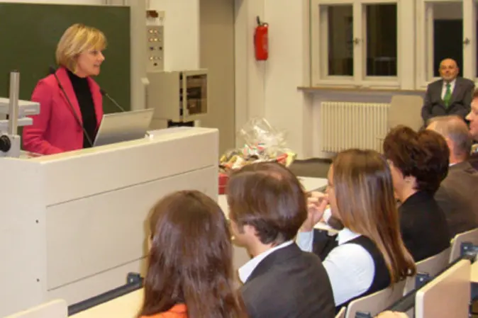 Prof. Dr. Sibylle Rahm, Dekanin der Fakultät Humanwissenschaften und Leiterin des Bamberger Lehrerbildungszentrums, erinnerte an Zeiten, als der „Herzblut-Didaktiker“ Andreas Gmelch als Junglehrer mit langen Haaren und Plateauschuhen zum Unterricht kam. Einige Jahre später, schon als Fachbereichsleiter der Arbeitslehre, habe er den Ruf nach München ins Kultusministerium abgelehnt mit der Begründung: „Die Universität, das ist mein Leben!“ Traditionelle Werte wie Ordnung, Höflichkeit, Pünktlichkeit und Genauigkeit, lobte Rahm, seien beim „Arbeitstugendenpapst“ Gmelch immer groß geschrieben worden.