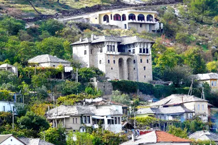 Das um 1200 von Byzantinern gegründete Argyrokastron gehörte ab dem frühen 15. Jahrhundert für vier Jahrhunderte zum Osmanischen Reich. Der Großteil des Gebäudebestandes der Altstadt stammt aus dem 18. und 19. Jahrhundert. Die Kulla, viereckige Wohntürme mit Wehrcharakter, dazu die zahlreichen, ebenso wehrhaften palastartigen Bürgerhäuser sowie ein kleiner Basar und einige Sakralbauten formen im Schatten einer mächtigen Burganlage eine imposantes Ensemble.