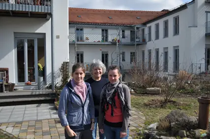 Eva McBride, Renate Rupprecht und Julia Kremtz (v.l.n.r.) im gemeinsamen Garten hinter der Villa Kunigunde...